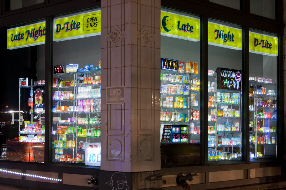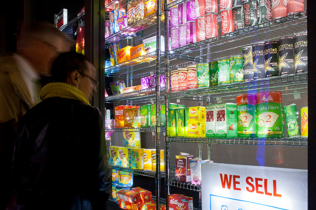 Handmade acetate lanterns created from copies of corner store products, given away during the course of one evening.