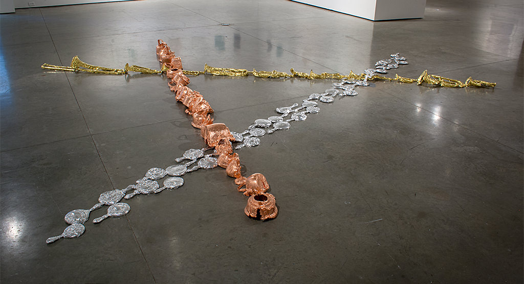 single continuous sheet of aluminum foil; single continuous sheet of copper foil; single continuous sheet of brass foil