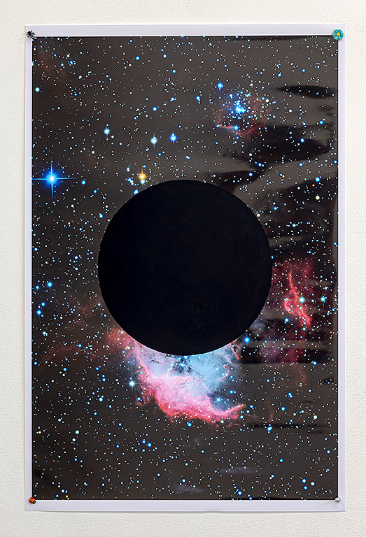 found poster, found pins, ultra black paint